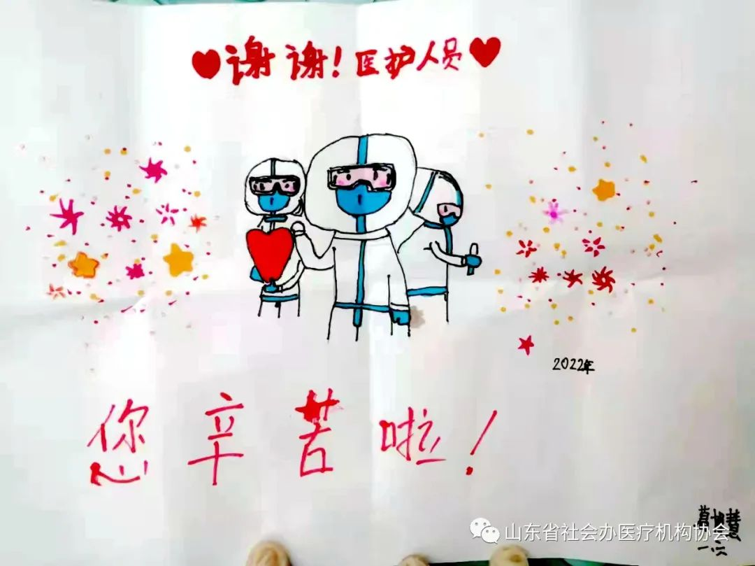 有幾位可愛聰穎的小朋友,他們用自己獨特的方式,表達著對魯西骨科醫(yī)院“大白”的喜愛和感謝,他們有的拿來自己用心創(chuàng)作的抗疫畫送到醫(yī)護人員的手上,有的用“愛心”感謝醫(yī)護人員,還有一位歌聲美妙的小姑娘,現(xiàn)場為醫(yī)護人員演唱了一首兒歌《兩只老虎》,醫(yī)護人員現(xiàn)場“收禮”,贏來居民們的陣陣掌聲。