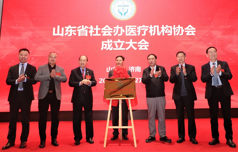 竇熙照、郝德明、包文輝、閆東方、余小寶、戴紅東、王世賓共同為山東省社會(huì)辦醫(yī)療機(jī)構(gòu)協(xié)會(huì)揭牌